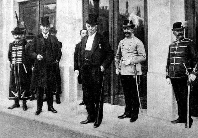 Újházi Ede (középen, szivarral) a kolozsvári Új Színház előtt, 1906. szeptemberében