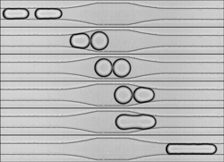 A molekula zölddel jelölt vizet szerető (hidrofil) és sárgával rajzolt vizet nem szerető (hidrofób) farok része a vizes közegben úgy rendeződik el, hogy végül a legoptimálisabb alakzat a gömb (micella) alakul ki.