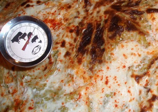 15 perc 220°C-on légkeveréssel. (A 65. perc végén az étel belső hőmérséklete 87,5°C). Ha elkészült, az ételt hagyjuk 10-15 percig pihenni. Másnapra különösen finom.