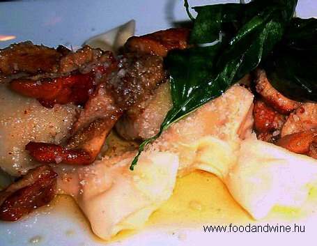 Tudjuk, hogy Donatella igazi tisztelettel viseltetik a kínai konyha, legfőképpen a kínai tésztafélék iránt, emellett egy gyermekkorában olvasott könyv nyomán hisz Marco Polo történeteiben, az olasz ravioli és spagetti kínai eredetében. Ezek tudatában a négy-, vagy háromszögletű helyett a szaloncukorka formájú ravioli meglepetés volt. (Hogy karácsonyi meglepetés, azt nem tudom, mert nem kérdeztem meg, hogy mindig így készítik-e.) A ravioli tésztája egyébként Cavalese környékén hagyományosan tojással és tejjel készülne.