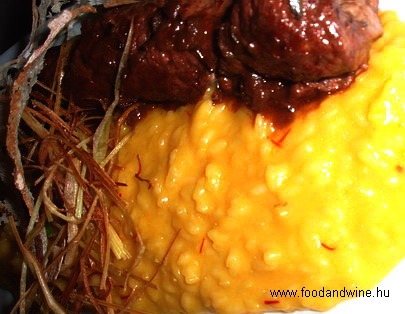 Nem rendeltem, csupán megkóstoltam a zsályás borjút sáfrányos rizottóval (Risotto alla Milanese), amely hagyományosan az ossobuco partnere a kulináris élvezetek színpadán. Nos, nem kertelek, ez a risotto végre megütötte azt a színvonalat, amelyet vártam. A borjú is kellemes volt, a zsálya is érződött, de közelébe sem ért a risottónak, amely számomra ezen a napon, ezen az ebéden,messze a legjobban elkészített étel volt.