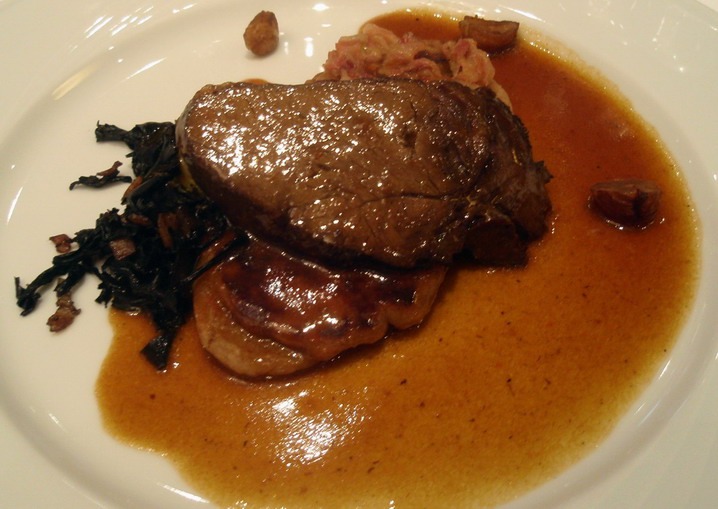 Somogyi szarvas pecsenye dödöllével, trombitagomba raguval, fényes gesztenyével és kelbimbóval (Buday Péter, Matteo étterem)