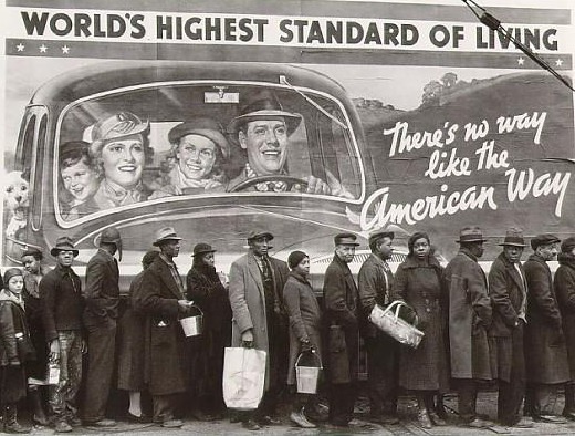 A nagy gazdasági világválság, szemben a korábbi válságok, háborúk időszakával, szerencsére nem tekinthető éhínségnek. Ez a megszorítás, az igények erőteljes redukálásának időszaka, de nem éhínség, legalábbis az USA-ban és Európa fejlettebb országaiban. (Nem így Ukrajnában, ahol ezidőtájt (1932-1933) egy tudatosan kitervelt és mesterségesen kiváltott éhínség (Holodomor) milliók halálát okozta.)