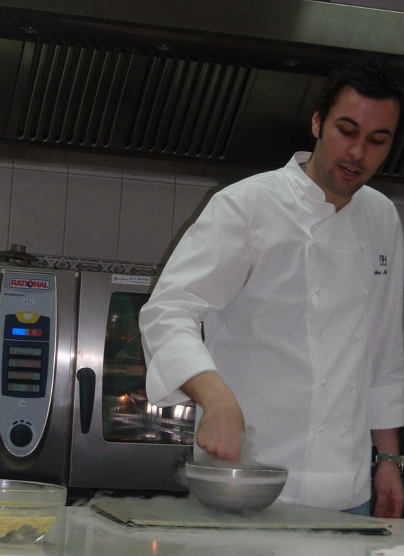 A MAGYAR BOCUSE d’OR AKADÉMIA szervezésében egy Paco Roncero bemutatóra voltam hivatalos. A bemutatót végül nem Paco Roncero tartotta, mivel az indulás előtt autóbalesetet szenvedett, hanem a kísérleti laboratórium vezetője, a 28 éves Adam Melonas. Az előző írásban már beszámoltam az előadásról, amelyet ez a gyakorlati bemutató követett.