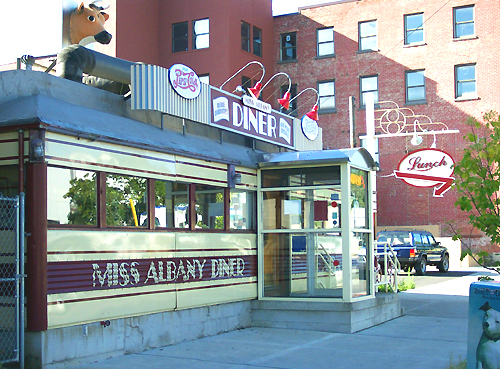 A MISS ALBANY DINER (Albany, NY, USA) egyike a legendás amerikai büféknek. A Hudson folyótól nem messze álló büfékocsi étlapján olyan népszerű tojásételek szerepelnek, mint a „Dutch Mothers Omelette”, a „The Bostonian”, vagy a „Black Bean Eggs”. Egyszerű ételek, amelyeket a hét minden napján ehetnek a vendégek, akikben nincs is hiány, mert ez a Diner is kulthelynek számít Amerikában. Sültkrumplija figyelemreméltóan tanulságos.