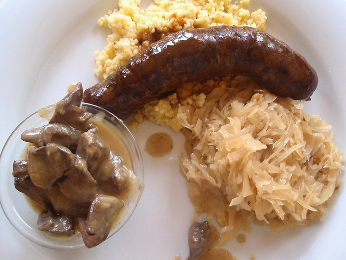 A képen látható tányér geográfiája: északra a köleshalmokon fekszik a házi szarvaskolbász. Alatta délkeletre a fehérkáposzta, délnyugatra pedig a kacsaszív. A kolbász kedvemre való volt. Illett hozzá a köles, akárcsak a káposzta. A kacsaszív ki tudja honnan került elő, talán valami levesestál mélyéről, de ragyogóan egészítette ki a pájsli (szalontüdő) babérleveles mártása. Némi száraz bor kedvemre jött volna, de aznap kimaradt, lett helyette házi bodzaszörp.