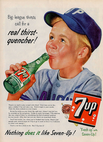 Korábban már írtam a Coca Cola-, a majonézes csokoládé- és a fűszeres paradicsomleves tortáról is. Ebbe a sorba tartozik a 7-UP torta. A Seven-Up már 1957-es szakácskönyvében is arra biztatja kísérletező kedvűeket, hogy a süteményeikben a receptben előírt folyadékot Seven-Uppal helyettesítsék. „Meglepődsz, hogy milyen könnyű és levegős lesz a süteményed.” – írják.