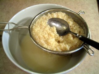 Elkészítése: alaposan mossuk meg a bulgurt és a rizst, majd tegyük edénybe. Öntsük fel a vízzel és áztassuk be egy éjszakára. Ezt követően tegyük a tűzhelyre, forraljuk fel, majd csökkentsük a hőmérsékletet és 2-3 órán át hagyjuk gyöngyözve főni, amíg a bulgur és a rizs szét nem főnek. (A vizet időről időre pótoljuk.) A szétfőtt bulgurt és rizst préseljük át szitán, hogy finom pürét kapjunk.