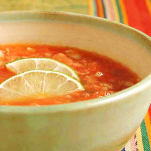 Tipp: az előző levesnek egy másképpen értelmezett vegán változatában a hozzávalók lényegében ugyanazok maradnak, azonban csak a görögdinnye egy részét pürésítik, a többi az egyéb hozzávalókkal, akárcsak egy salátánál, felaprítva kerül tálba. Ezekre az apróra vágott zöldségekre kerül a pürésített görögdinnye.