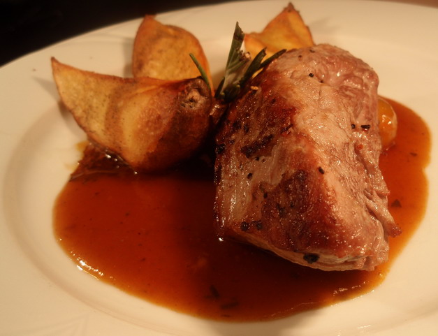 4) Rozmaringos szűzpecsenye kemencés burgonyával, fügés-gyöngyhagymás glace-szal