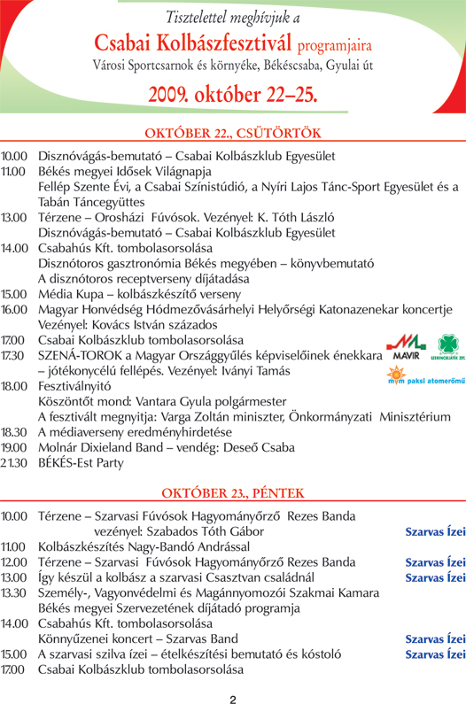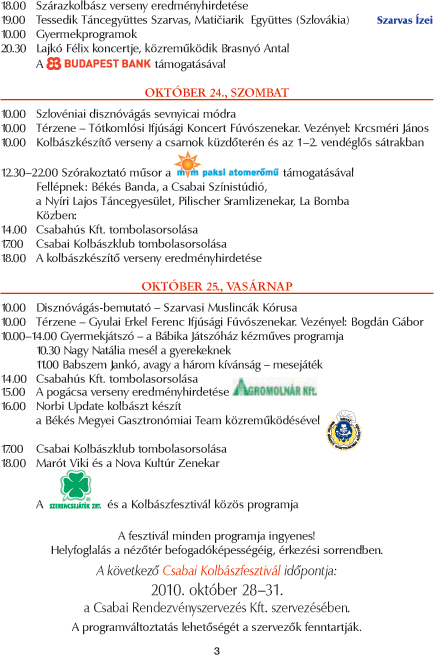 A CSABAI KOLBÁSZFESZTIVÁL 1997 óta szépen kinőtte magát. Kezdetben még némi tartózkodással figyeltem ezt a fesztivált (is), azonban mára már bebizonyosodott, hogy a csabai kolbászfesztivál rászolgál a nagyszámú közönség érdeklődésére, és valós igényt elégít ki. Az idén október 22-25 között ismét megrendezésre kerül az immár hagyományos Csabai Kolbászfesztivál.