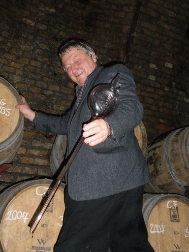 A szombat, mint minden szombat Villányban, kicsit bizonytalanul indult. Némi tétova borozgatás Bock Józsefnél, aztán Günzer Tamásnál ebéd. Nyúl, csirke, csülök, köretek. A borok tetszettek, a nyúl ugyan ízletes volt, de kívánta volna a szalonnát, hogy a comb ki ne száradhasson, ahogy tette. Jó volt, de több gondossággal akár emlékezetes is maradhatott volna. Günzer Tamás után Tiffán Ede szép boraiból is kóstoltunk néhányat, majd a Siklós felé vezető úton a Wunderlich Pincészet felé indultunk. Lojzi már várt.