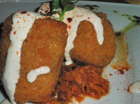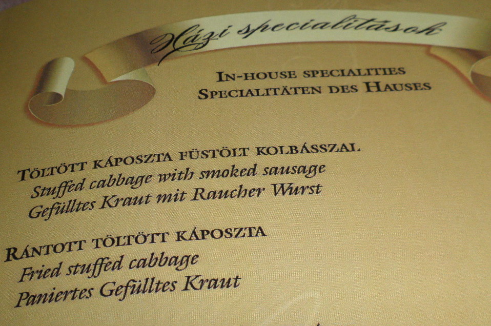 Az étterem étlapját nézegetve meglepő gyorsasággal, s egyöntetűséggel találtuk meg az aznapi este kedvünkre való ételét, a rántott töltött káposztát.