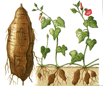 kapaszkodó hajnalkával, ami persze nem a véletlen műve. A batáta, vagyis az édesburgonya (Ipomoea batatas L. Poir) ugyanis ugyanabba a világszerte elterjedt és sikeres családba (Convolvulaceae = szulákfélék) tartozik, mint az említett és itthon is gyakori növények.