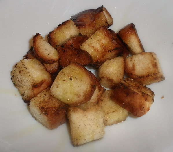 Elkészítése: Serpenyőbe tegyünk 1 evőkanál olíva olajat és a hosszában felvágott fekete erdei sonkaszeleteket pirítsuk ropogósra. Ha elkészült a sonkát szedjük ki a serpenyőből, tegyük külön, és a visszamaradt felhevített zsiradékban pirítsuk meg az apró gombák kalapját, tönkjét. (Ha nagyobb méretű gombánk van, vágjuk hosszában ketté, és úgy pirítsuk meg.) Ha a gomba aranybarnára sült, ízlés szerint őröljünk rá feketeborsot, majd vegyük ki a serpenyőből és tegyük félre. A serpenyőbe tegyünk 1 evőkanál olajat és tegyük bele 2 centiméteresre vágott fonott kalács kockákat és pirítsuk aranybarnára. (A pirításhoz szükség szerint öntsünk a serpenyőbe még olajat.)