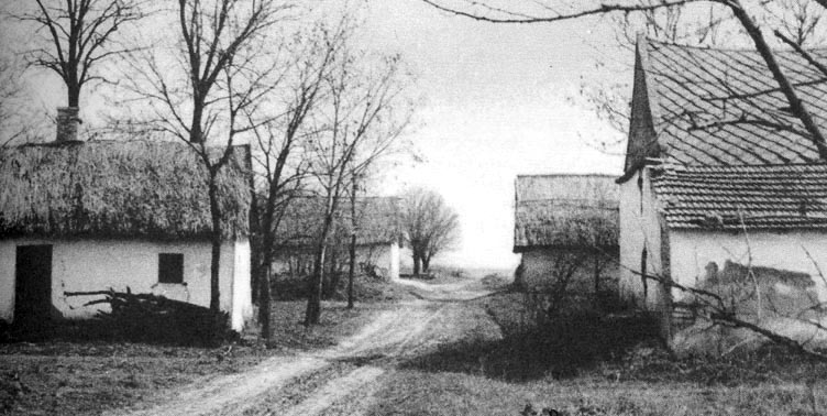 Sorba rendeződött szállás-épületek (Uszod-Hanyik, Bács-Kiskun m., 1970-es évek), Forrás: mek.oszk.hu