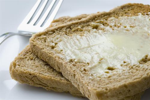 - Amennyiben balkezesek vagyunk, úgy jobb kezünkbe vegyük a kenyeret és a bal kezünkbe vett késsel kaparjuk le a vajat a kenyérről.