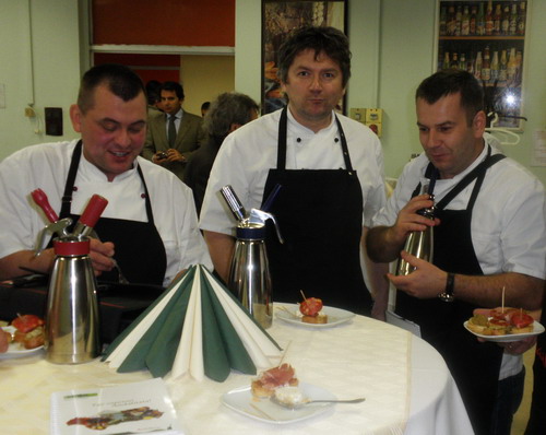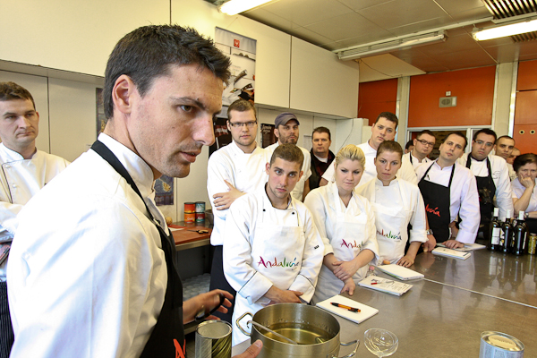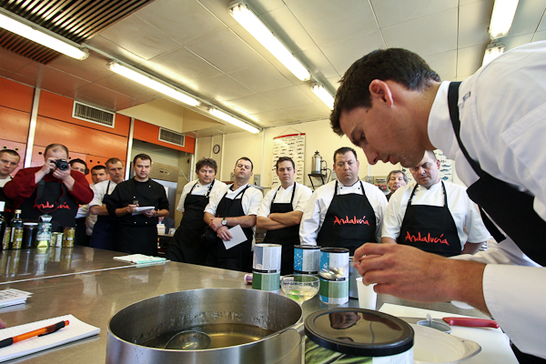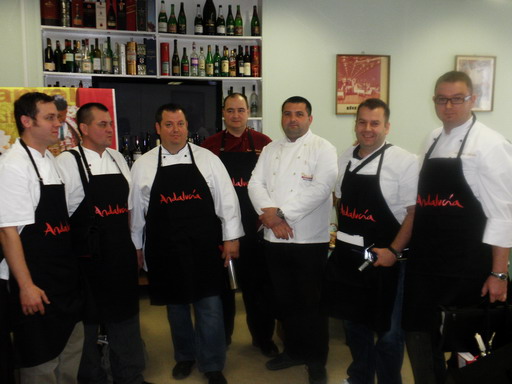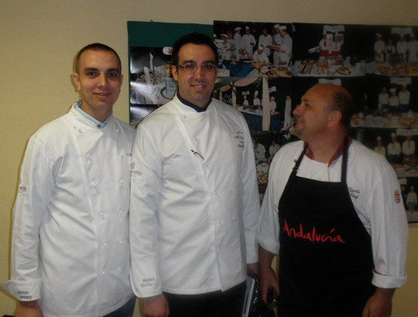 MEGHÍVÓ ÉRKEZETT a Lucullus Baráti Társaságtól. A meghívó egy egynapos mesterkurzusra szólt, amelyre 35 magyar séf jelentkezett. Ennyien voltak kíváncsiak Miguel Ángel Benjumea Loro andalúz séf bemutatójára. A kurzus az Andalúz Kereskedelem fejlesztési Iroda (Extenda) közreműködésével jött létre. Miguel Ángel Benjumea Loro egyébként egy 2 Michelin csillagos étteremben (La Alquería), az El Bulli luxus hoteljében (Hacienda Benazuza El Bulli Hotel, Sevilla) is szerzett tapasztalatokat, s