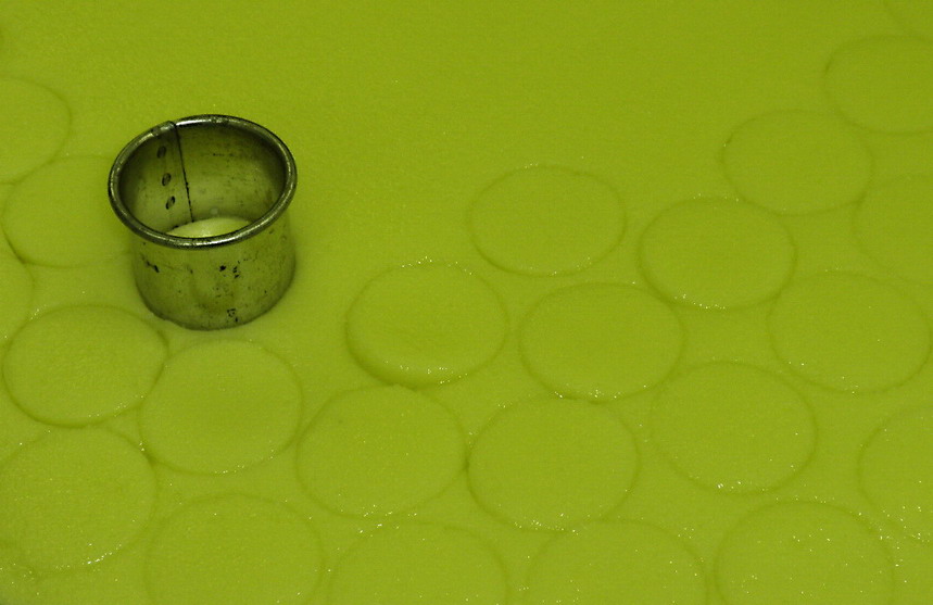 Hozzávalók: 870 g olíva olaj (arbequina), 360 g maltodextrin, 14 g só. Elkészítése: Egy tálban összekeverjüka hozzávalókat egy spatulával. Amikor a massza már homogén, egy hermetikusan záródó edénybe tesszük, s száraz helyen tartjuk. Elkészítésekor 1 cm-es vastagságúra nyújtjuk majd egy tészta kiszúró segítségével kb. 3 cm-es átmérőjű köröket szaggatunk belőle. 180 °C-on megsütjük. A tetejüket dehidratált paradicsommal (crutomat) megszórva tálaljuk. (A vacsorán az előbbi kompozívció némi zsálya díszítést és alamzselatin ízesítést is kapott.)