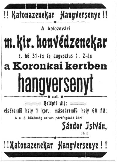 Berecz Edgár írásához hozzáolvasgatva akadtam a székelyudvarhelyi Fényes Vendéglő rövid történetére. A vendéglőről szóló sorokhoz mellékelt korabeli plakátok igen megragadtak, ráadásul a 19. század végének, 20. század elejének székelyudvarhelyi vendéglői életébe is bepillantást engednek. A következő sorok a Fényes Vendéglő (Székelyudvarhely) honlapjáról valók: