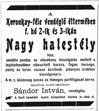 Sajnos mégsem sikerült neki a felszínen maradni, betegsége miatt a vendéglő átengedésére kényszerült: az általa Hungáriának nevezett éttermet 1908-ban BarkóczyAlbert vette át. A Fényes vendéglőt az idősebb udvarhelyiek közül sokan még ma is Barkóczy-étteremnek hívják.