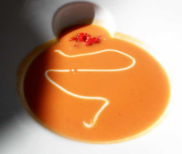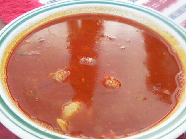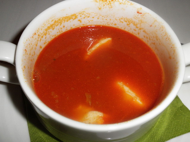 Az Kistücsök Éttermet nem szükséges bemutatni. Miután Csapody Balázzsal beszéltünk a Nemzeti Gulyás Nap (NGN) egy-két részletéről, sor került az ebéd kiválasztására is. Az első fogás „Hideg joghurtos sültpaprika-krémleves” volt. Könnyed, kellemes ízvilágú, üdítő nyári leves volt. Tetszett, bár ha magam készíteném, rusztikusabbra komponálnám.