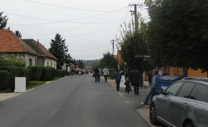 Az Etyek felé vivő kanyargós keskeny úton kilométeres kocsisor jelezte, hogy közeledünk a faluhoz. A távolban már látszottak az ideiglenes parkolók is. Előttünk nem egy autós megfordult, feladta, megunta az araszolgatást. Bennünk is felvetődött, hogy megér-e ennyit, de kitartottunk, s várakozásainkkal szemben elég gyorsan elértünk a falu határában álló parkolóhoz. 800 Forintért kaptunk egy parkolójegyet és egy ingyenes jegyet a parkolóból a faluba közlekedő mikrobuszra. Aki egyedül érkezik annak ez még talán kifizetődő, de mi hatan voltunk, s egy főnek 700 Forintért kínáltak ülőhelyet a buszon. Nem buszozni érkeztünk, hanem friss levegőt szívni, ezért a mellettünk elhaladó benzin és diesel üzemű gépjárművekkel együtt az aszfaltúton közelítettük meg a falut.