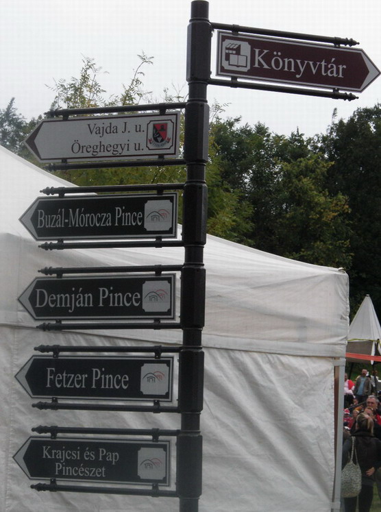 Egy lendülettel el is sétáltunk a falu végéig, ahol körbenéztünk, nyugtáztuk, hogy a könyvtár éppen ellenkező irányban van mint a pincék, majd megfordultunk és amerről jöttünk mentünk is visszafelé. Kétoldalt többfelé is sátrak, nyüzsgő tömeg, s kezünkben üres és száraz poharunkkal azon meditáltunk, hogy 100 Ft/db kóstolójegyünket mire is vesztegessük el. Aztán a Kecskegödör pincesoron megtörtént az áttörés. Két itallal is próbálkoztunk. Az egyik valami nagyon borzasztó volt, ám a másik egy furmintféle, az igen… az sem volt jobb. Az elmúlt években ronda ősz járta arrafelé, ahol azt a szőlőt szüretelték , amiből ezek az italok (komolynak sejtett szándékkal) készültek.
