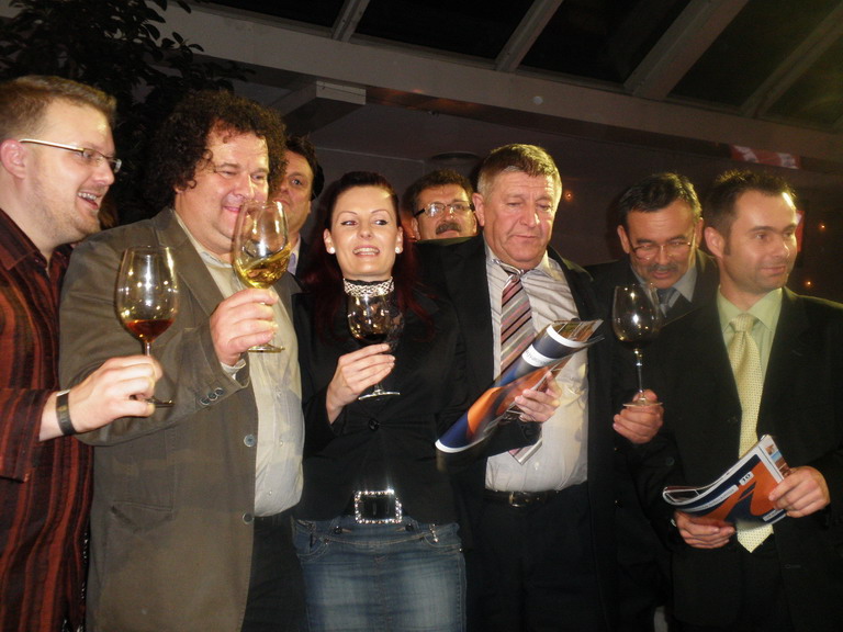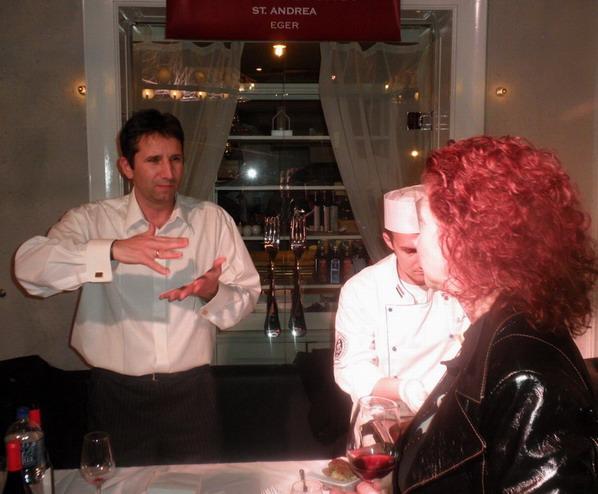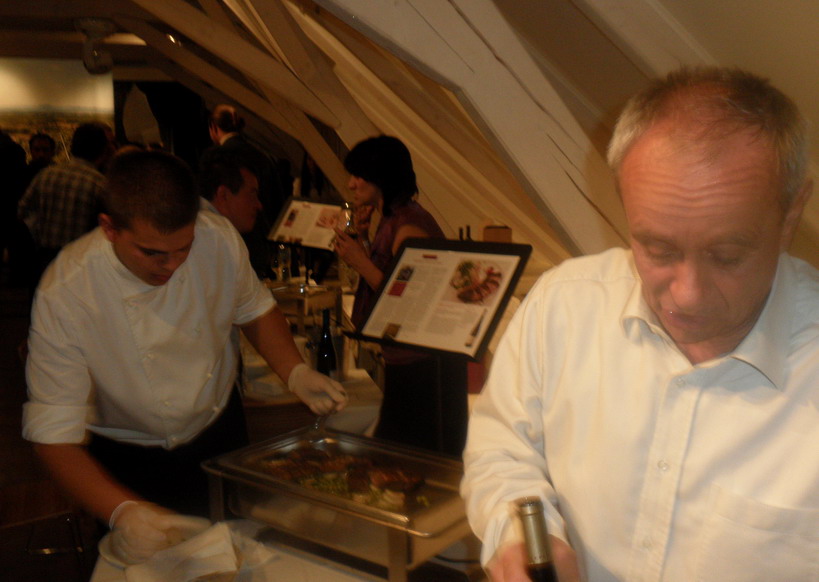 A következő képen Szepsy István, aki zsályás libamellet kínált a boraihoz.