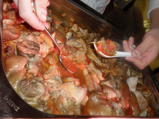 Keller György Villányból egészben sült sertéscsülköt készíttetett lecsóágyon.