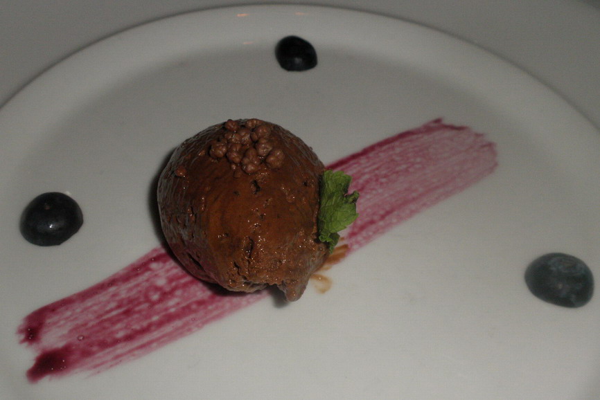 A desszert jellegzetes Litauszki-féle minimalista stílusban komponálódott. Semmi felesleges barokkos túlzás (amit egyébként a desszertek bujasága még meg is engedne). A kávés, Valrhona csokoládés, robbanó cukros desszert remek volt. A november 19-én szüretelt syrah szőlőből készült „aszú” egy újabb érdekes, s összetett bor volt a szomolyai borásztól.
