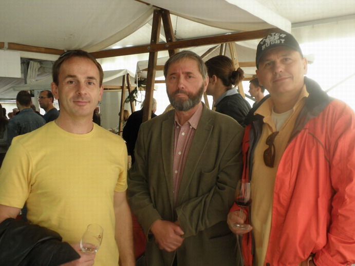 A képen középen álló Vesztergombi József (Remete Bor) régi olvasója a blognak, én pedig régi tisztelője vagyok a borásznak. Kadarkája különösen kiemelkedő. A Szentendrén kóstolt kadarka ízét, zamatát, illatát még másnap is érezni véltem, pedig akadt néhány jó bor, amit a kadarka után is kóstoltam, mégsem voltak képesek az élményt elnyomni.