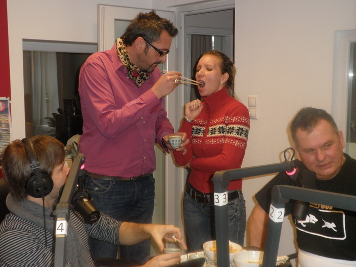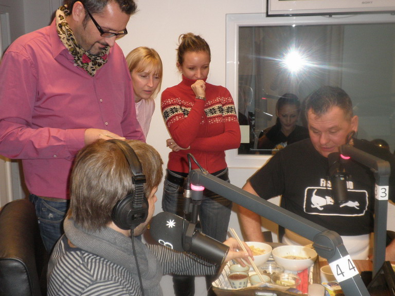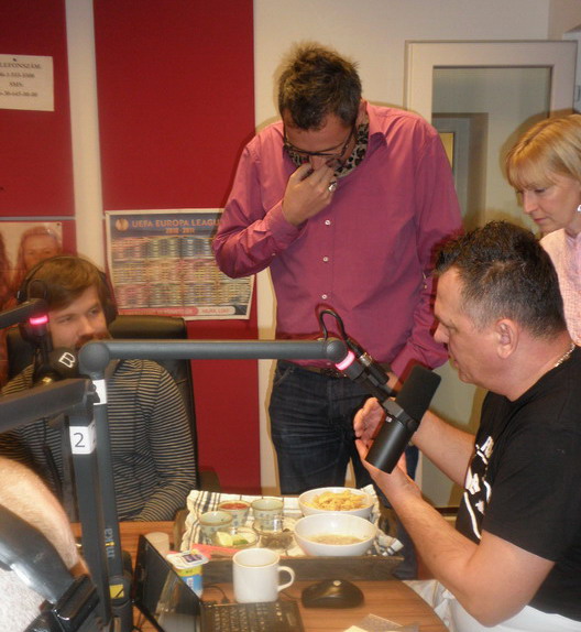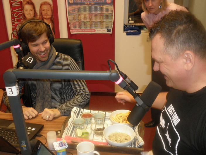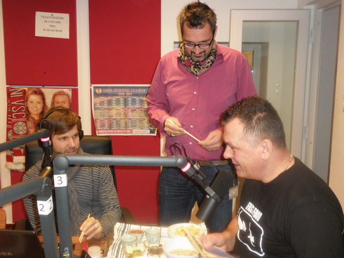 A CLASS FM reggeli őrülete Sebestyén Balázzsal, Rákóczi Ferivel és Vadon Janival. Leírhatatlan, elmondhatatlan… Hallgatni kell! Itt a helyetek! Füleket a rádióra reggel hattól egészen tíz óráig! – így szól a Class FM honlapján a beharangozó. Ide hívtak tegnap reggel nyolc és kilenc között, hogy beszélgessünk a rovarevés rejtelmeiről, s persze valami gusztusos reggeli meleg ételt is készítsek, amelyben a rovarok főszereplők lesznek. Nem egy degusztációs menüt, de egy kezdetnek megfelelő „rovarízelítőt” készítettem.