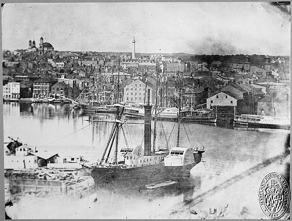 Kossuth Lajost az amerikai források nagy hazafinak és szabadságharcosnak írják le és megemlítik azt is, hogy Lafayette tábornok után ő volt a második külföldi, akit azzal tiszteltek meg, hogy beszédet mondhatott az Egyesült Államok kongresszusának összevont ülésén. Kossuth Lajos amerikai útjáról László Károly számolt be, s Pordán Ildikó tárta fel (1996). A képen Baltimore kikötője két évvel Kossuth látogatása előtt, 1849-ben.