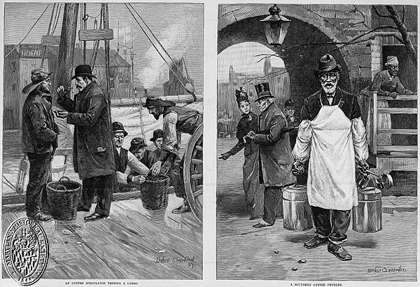 Baltimore egyébként az osztriga halászatáról is híres volt. A korabeli képen osztrigahalászok láthatók. A partokon mindenütt, ahol előfordult, ebben az időben nagy mennyiségben halászták az osztrigát, s ha már egy ilyen 21. századi luxusélelmiszer került szóba, akkor megemlítendő az is, hogy a kaviárt is nagy mennyiségben gyűjtötték, s sokfelé ingyen adták a sör mellé, csak hogy az ital jobban csússzon, s a kocsmáros haszna ezzel növekedjék.