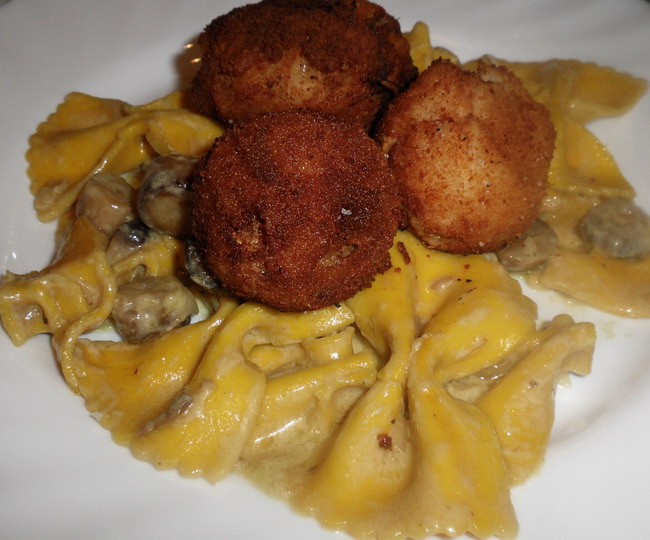 Úgy érzem ehhez a szaftos tésztához a rántott gombafejen kívül, netán mellé nagyon jól illene a vajon (nem margarinon) pirított gombafej is, ami saját készítésű fűszervajjal van ízesítve. (vaj, vöröshagyma, fokhagyma, petrezselyem, só, bors. Igen finom!