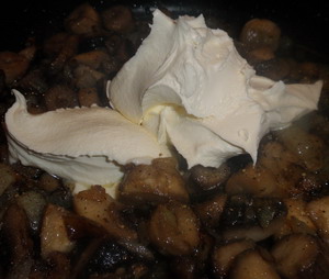 A gomba tönkjét megtisztítjuk, felvágjuk, és hagymával, serpenyőben, olajon pírítjuk aranybarnára. Sózzuk, borsozzuk (esetleg rozmaringot, kakukkfüvet adunk hozzá) és tejszínnel, mascarponéval, tejföllel, vagy ezek kedvünk szerinti arányú kombinációjával gombás mártás készítünk. Ha sűrű lenne, kevés víz, vagy fehérbor hozzáadásával hígíthatjuk. Pár csepp citromlé is kerülhet bele.