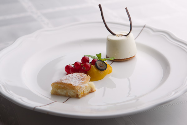 A díszvacsorán felszolgált desszert mai és kora újkori rétesekkel szembeni másságát a formai ötletek adták. A tálon három különböző felfogású rétes volt. Egy apró, klasszikus, újkori feltekert túrós, sárgabarackos rétes. Egy másik, melyben a ribizli díszítés alatt a túró sült, ropogós réteslapokkal keveredett, amire őszibarack ragu halmozódott. S egy harmadik ’rétes’ variáció, amely nem volt más, mint egy túróhab henger, melynek az üreges közepe sárgabarack ízzel lett megtöltve, majd mindez egy réteslap korongra helyeződött.