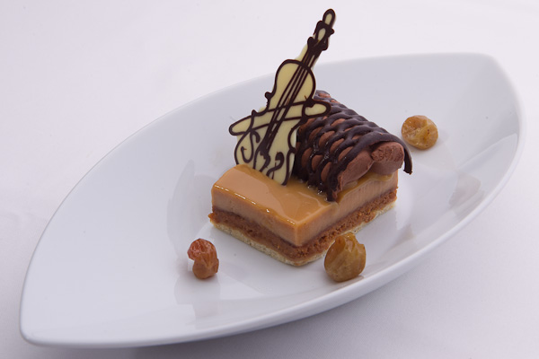 Az Elysiumhoz készített desszert a „Ropogós mogyorószelet töppesztett szőlővel”. A desszert rétegei: piskóta, ropogós mogyorós ostya, visszafogottan édes mogyorókrém, csokoládé hab (mousse au chocolat), csokoládérácsozás. A desszertet – talán a regényes életű Rigó Jancsi prímásra is utalva – fehér csokoládé hegedű díszítette. A tányérra néhány szem házi készítésű töppesztett szőlő is jutott. Előzetesen talán éppen a desszert tűnt a bor-étel párosítás szempontjából leginkább kétséges megoldásnak, ám összességében illett az Elysium kivételes minőségéhez és hömpölygő nagyszerűségéhez.