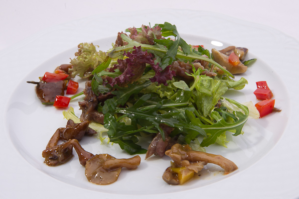 A Kárpátia étterem (Budapest) csapata, Bereznay Tamás vezetésével ehhez a borhoz „Erdei gomba saláta fűszeres kacsafalatokkal” előételt tálalt. Az ételeket előző nap Gál Helga, Ruprecht László és Niklai Ákos társaságában a próbafőzés során már összekóstoltuk a borokkal, így a vacsora ételei ismerősek voltak, nem okoztak meglepetést. Az előétel kellemesen meleg kacsahús macerátumai, az erdei gombák remekül illettek a zöldsalátához és a dresszinghez, ráadásul a borhoz is. Nagyszerű előétel volt.