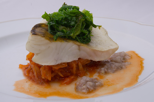 Az irdalt fogas filékre vajdarab került és így sütötték 180°C hőmérsékleten. A vecsési savanyú káposzta hagymaalappal indult, majd paradicsom került hozzá, s kaporral, fokhagymával, őrölt borssal ízesítették. A hal a káposztára került, majd arra leforrázott, vajjal áthúzott, laskára vágott kelkáposzta levelek halmozódtak. Az étel köré kevés tengeri halból készült halalaplében megfőzött hajdinát tettek. A fogas nem véletlenül számít a legmagasabbra értékelt halunknak. Illett hozzá az évszakhoz is idomuló káposzta, amely hosszú évszázadokon át, egészen a 19. század végéig felettébb népszerű alapanyaga volt a magyar konyhának is. Hajdan a káposzta és a hal a legtermészetesebb szövetségesei voltak egymásnak, különösen a gyakori böjti időszakokban. A hajdina ma már méltatlanul mellőzött kása alapanyag a hazai konyhában, miközben már a 15. század óta meghonosult Magyarországon. Jól elkészített, szép főétel komponálódott a furminthoz, s az évszakhoz is, s mindemellett a magyar konyha korábbi évszázadainak hagyományaihoz is jól kötődik,