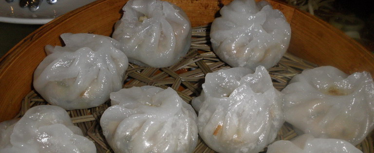A gőzölőben tálalt falatka (dim sum) ismét egy kantoni étel volt, amelyből már láthattunk mást is, mint a sertésoldalas. Pillanatok alatt elfogyott. Az ételhez hagyományosan tea (yum cha) tartozik. Igen finom jázmin teát ihattunk az est során, s meglepő módon majd’mindenhez illett.