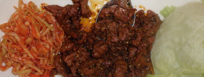Fűszeres, csípős sertés követte a rákot (illetve akár egyidejűleg is az asztalon lehetne). nagyon tetszett.