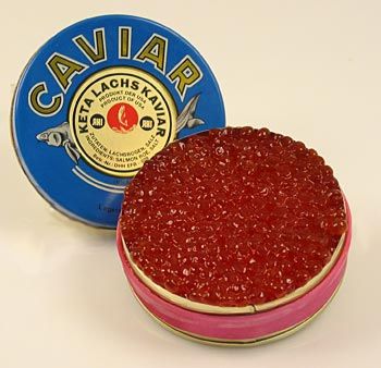 Keta kaviár: A keta lazac ikrája. Színe a vöröstől a halvány narancsszínűig terjed, fényes, az alaszkai lazackaviárnál valamivel nagyobb. Oroszországban az 1800-as évek elejétől ismert, de Alaszkában is megtalálható, ahol számos névvel (Chum, Chob, Calico lazac, stb.) illetik. 100 g orosz keta kaviár 3 ezer Ft. A lazackaviárok a hetvenes évektől váltak egyre népszerűbbé. Ikrájuk közepesen nagy, színűk a halvány rózsaszín és a vörös közötti árnyalatokban játszik. A lazackaviár a drága tokhal kaviárok leggyakoribb helyettesítője, ezért az illegális kaviár halászat és kereskedelem egyik fő területe éppen a lazackaviár. 100 g 2,5-4,0 Ft.