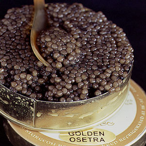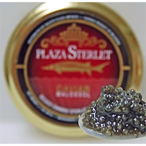 STERLET: Az Eurázsiában elterjedt kisméretű kecsege, a sterlet (Acipenser ruthenus) ikrája aranyszínű, s nem is oly’ régen még a legmagasabbra értékelték, s uralkodóknak tartották fenn. Ez a fajta kaviár egy időben gyakorlatilag eltűnt. Ma már a Litvániában és másutt tenyésztett kecsege ikrájaként újra megjelent. 100 g 70 ezer Ft. (A beluga és a sterlet, azaz a viza és a kecsege hibridje a „vicsege”, amit hazánkban valamikor Százhalombattán tenyésztettek.)