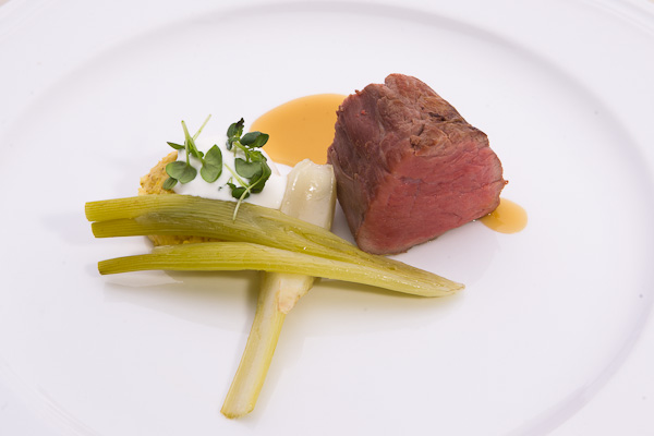 A főétel „Borjúszűz kecskesajtos puliszkával, édesköménnyel”. A borjúszűz méltó főétel, sous-vide technológiával készítve emlékezetes textúrája volt, amit a kora délutáni próbafőzésen Gál Helga elnökségi sommelier és Ruprecht László chef, gasztronómiai tanácsadó és Kusnyár Gábor, az Akadémia Klub igazgatójának társaságában a Magyar Tudományos Akadémia éttermében is megtapasztalhattunk. A kecskesajtos puliszka jó választásnak bizonyult, ahogy még az édeskömény is. A kömény enyhe ánizsos íze, roppanós textúrája mind a borral, mind a puliszkával, borjúval harmonizált. A bor, s étel párosítása is igen jó volt.