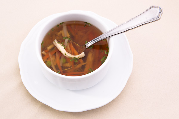 2) Az előétel után „Újházi tyúkhúsleves” következett.