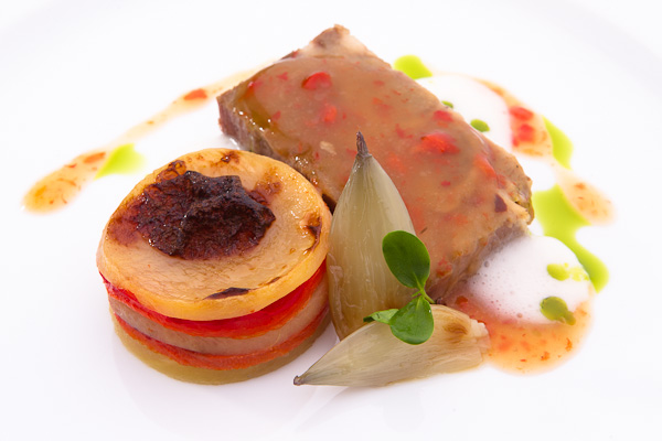 A borhoz készített főétel a „Mangalica tarja paprikás krumplival” volt. Az Újházi tyúkhúslevest követően a mangalica ismét jó választásnak bizonyult ebben a menüben, egyszersmind lehetőséget adott értékeink felmutatására is. Az 1990-es évek eleje óta hazánkban újra népszerűvé vált mangalica Európának ebben a földrajzi környezetében többfelé, s régóta megbecsült, nálunk is őshonos, s már a 19. század eleje óta közönséges, ma pedig már törvényileg is védett. A háromszáz főt is meghaladó létszámú vacsora húsainak elkészítéséhez ismét a vákuum alatti (sous-vide) technológiát hívták segítségül. Az alacsony hőmérsékletű készítés remek textúrát és zamatokat eredményezett, amihez paprikás krumpli társult, ám nem a paraszti, polgári konyhában megszokott, zsírral, hagymával, őrölt pirospaprikával készített formában, hanem annak egyfajta utánérzésével. A karikázott burgonya és paprika a tarjához hasonlóan vákuum alatt készült, alacsony hőmérsékleten, majd szalonnahabbal, pecsenyelével (jus), hagymával együtt volt hivatott a paraszti paprikás krumpli 21. századi reinkarnációjává lenni. Az étel egyszerre volt hagyományőrző és innovatív, akárcsak a bor, a Szilénusz 2007, melyhez komponálták.