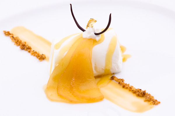 A desszert, a „Kecskesajt körtekaramellben” kiemelkedő párt alkotott a borral. Az ízek, a textúrák, formák, harmóniák, a sajt, a körte, s karamell valóban egymásra találtak a Balaton-felvidék desszertborával. Emlékezetes párt alkottak.