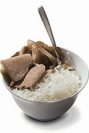 A képen Jean-Georges Vongerichten „umami bomba” elnevezésű étele. Fehér szarvasgomba és parmezánsajt. Tömény élvezet, a szarvasgombába és a parmezánba zárva pedig tömény umami, vagyis nátrium-glutamát (MSG).